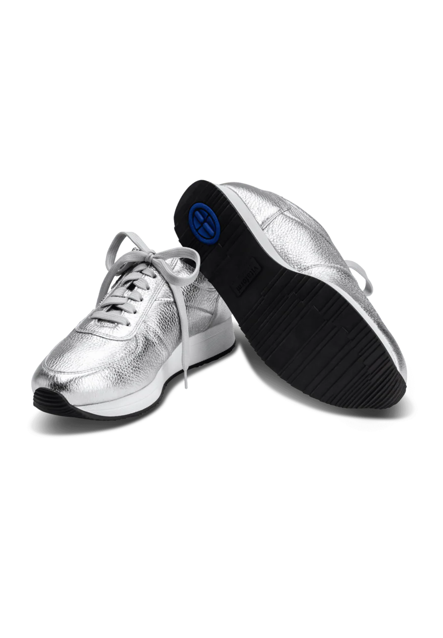 Ein metallisches Aufleuchten Ihrer Schuhe - staunende Gesichter und ganz viel Komfort! Das ist dieser VITAFORM-Sneaker aus Hirschleder mit metallic Optik. Das Besondere? VITAFORM hat hier vor allem an die Damen gedacht, die auf etwas kräftigerem Fuß durchs Leben gehen. Dieser Traum-Sneaker hat nämlich die Weite K. Shock-Absorber, Vorfußpolsterung, extra dickes Luftpolsterfußbett und praktischer Reinschlüpf-Reißverschluss inklusive. Schlüpfen Sie doch mal rein!