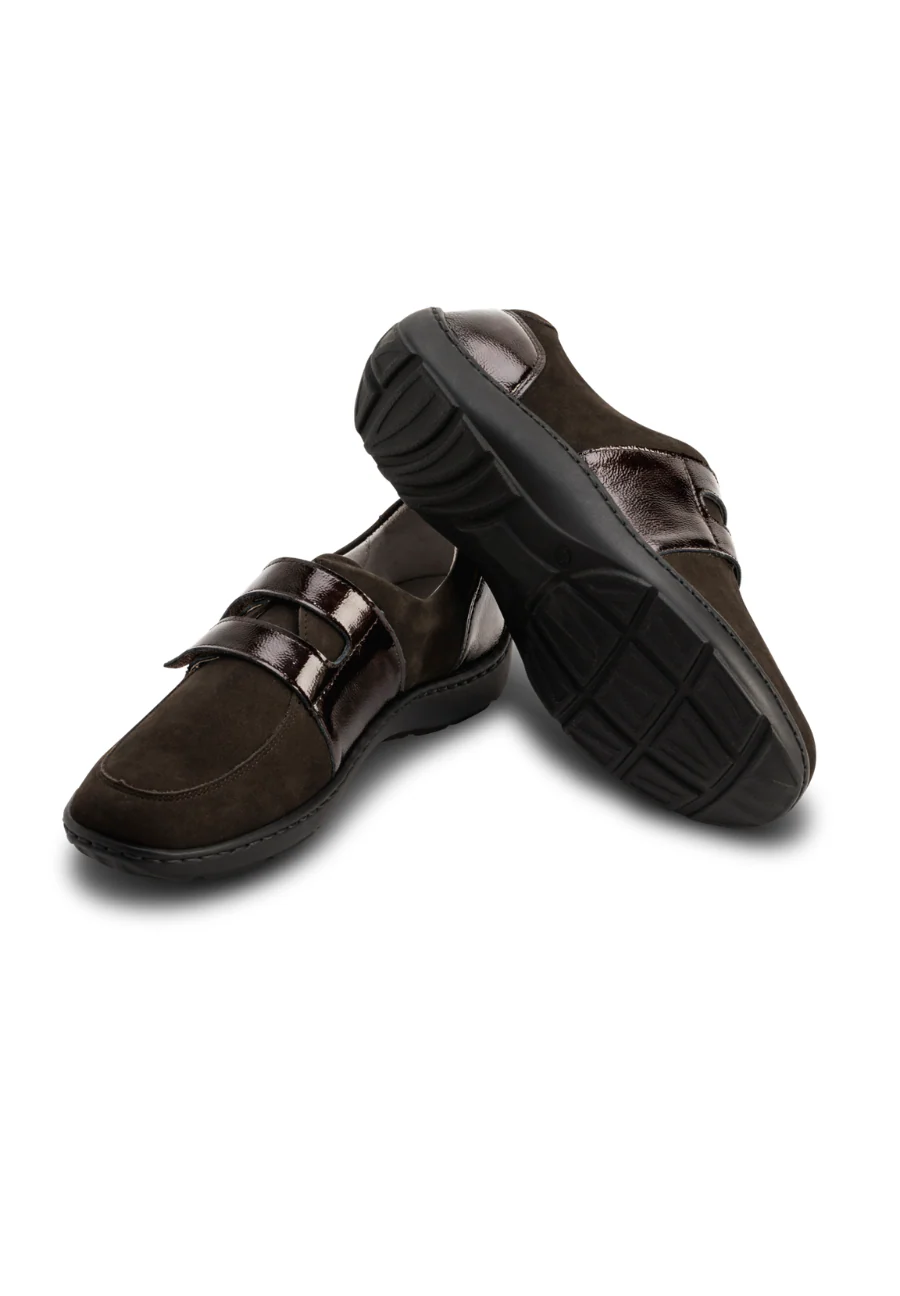 Immer einen Schritt voraus! Unser Kletter aus edlem Softnubuk und glänzendem Lackleder ist ein zeitloser Allrounder und gleichzeitig superpraktisch: Zwei Klettverschlüsse erleichtern den Einstieg in das erstklassige schokofarbene Laufwunder, dessen Sohle hochwertig von Hand vernäht wurde, extra um einen einzigartig leichten und langlebigen Schuh zu schaffen, den Füße lieben werden.