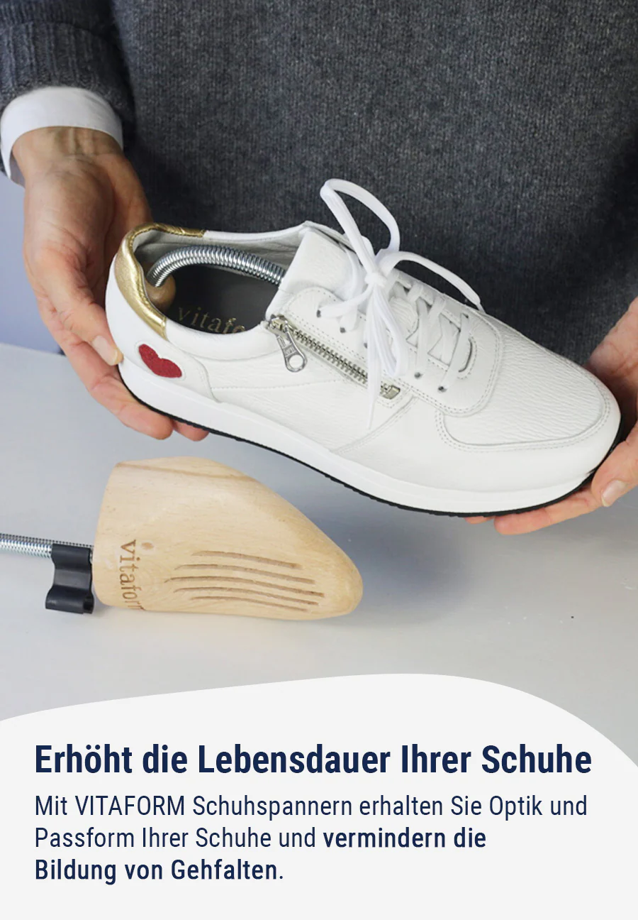 Damit Sie lange Freude an Ihren Schuhlieblingen haben, sollten Sie unbedingt Schuhspanner verwenden. Sie haben die wichtige Aufgabe, einen Schuh sowohl in seiner optischen als auch in seiner Passform zu erhalten. Am besten dafür geeignet sind solche aus Holz, da sie die im Schuh entstehende Feuchtigkeit besonders gut aufnehmen können. Legen Sie sie immer unmittelbar nach dem Tragen ein und lassen Sie ihn möglichst einen Tag in den Schuhen. Bei regelmäßigem Einsatz bleibt so die Passform Ihrer Schuhe erhalten und auch die Bildung von Gehfalten wird vermindert. Unsere Schuhspanner sind aus europäischem Buchenholz gefertigt und stammen aus nachhaltiger Forstwirtschaft.