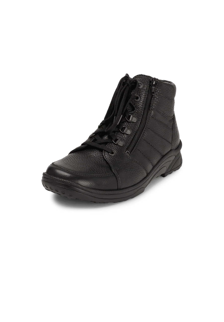 Kernig plus urban: Dieser Stiefel ist sowas wie der Wanderschuh für die Stadt. Für Männer, die gerne sportlich-aktiv unterwegs sind und dabei einen eigenen Stil pflegen. Gespickt mit markanten Details wie den robusten Ösen für die Schnürung und der dynamischen Sohlenform versprüht er echten Naturburschen-Charme. Auf der anderen Seite ist er durch sein geschmeidiges Kalbsleder in schwarz ein absolut stylischer Begleiter, der sich in der Stadtluft wohlfühlt, ob Café, Club oder Office. Ziehen Sie los und freuen Sie sich bei jedem Schritt wie hier soft und robust zusammen gehen.