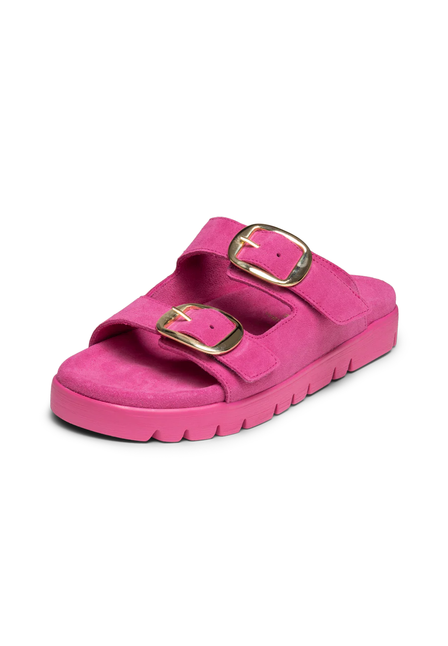 Erleben Sie spürbaren Verwöhn-Komfort bei jedem Schritt: Diese VITAFORM Pantolette überzeugt mit einem extrem weichen, komplett gepolsterten Fußbett, das mit dem bewährten Vakuumluftpolster ausgestattet ist und in Kombination mit dem integrierten Shock-Absorber für sanftes Auftreten sowie optimale Stoßdämpfung sorgt. Das hochwertige Veloursleder schmiegt sich angenehm an Ihren Fuß an und verleiht dem Modell eine elegante Note. Verstellbare Riemen mit praktischem Klettverschluss ermöglichen eine individuelle Anpassung, während die dekorative Dornschließe als modischer Blickfang dient. Dank der großzügigen Komfortweite H genießen auch kräftigere Füße ausreichend Platz und ein rundum angenehmes Tragegefühl – ideal für entspannte Sommertage mit Stil.