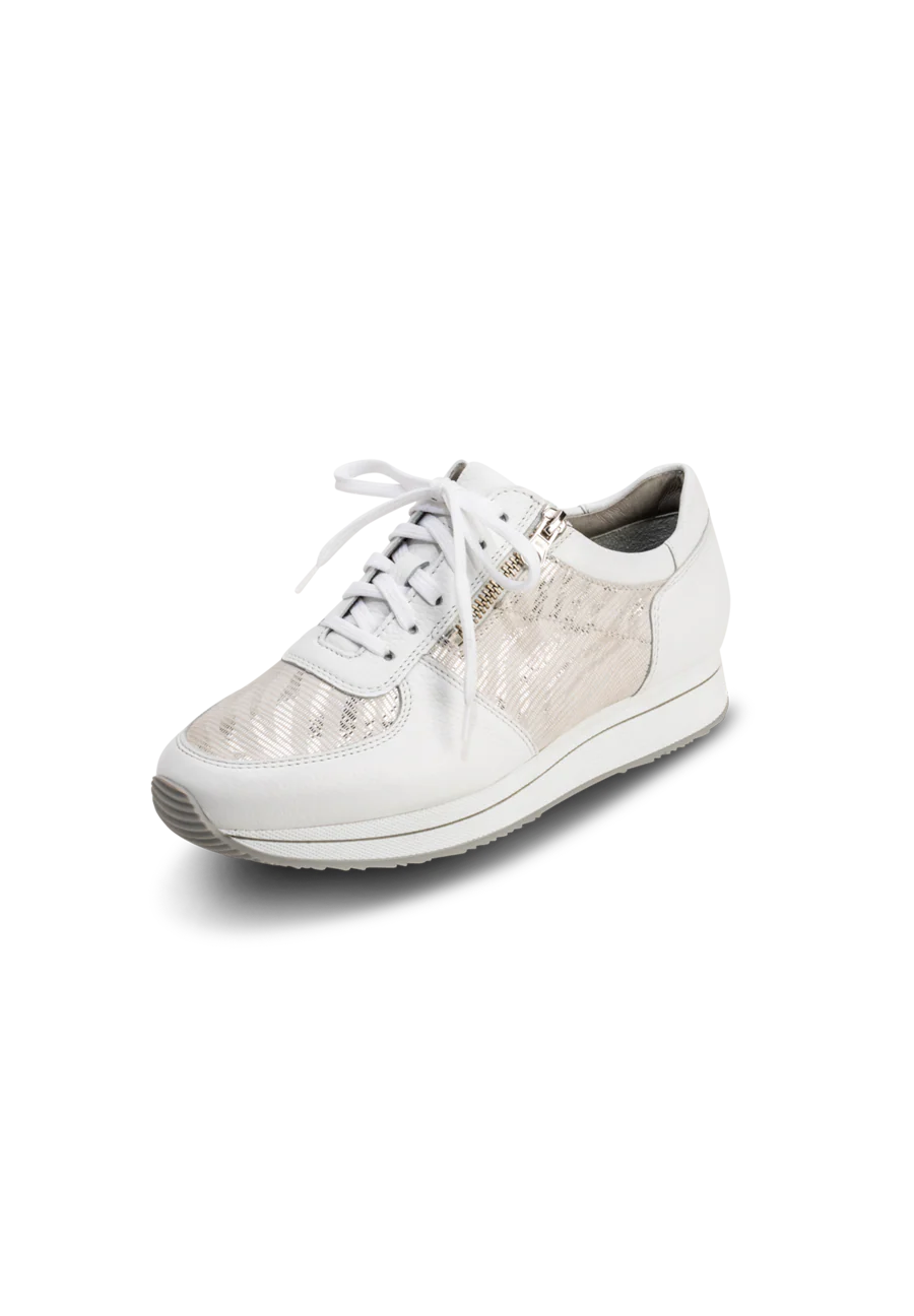 Metallic meets Zebra: Metallische Highlights oder Streifen kann jeder, deshalb bringt VITAFORM wieder einmal gekonnt die Trends auf den "Next Level" und lässt den animalischen Trendprint in spiegelndem Glanz und Glamour neu erstrahlen. Das modische Highlight in Sneakerform, ist nicht nur das Ergebnis einer trendigen Paarung, sondern sorgt dank dämpfendem Shock-Absorber und ultraleichter, rutschhemmender Laufsohle für einen höchst angenehmen und einmaligen High-Comfort.